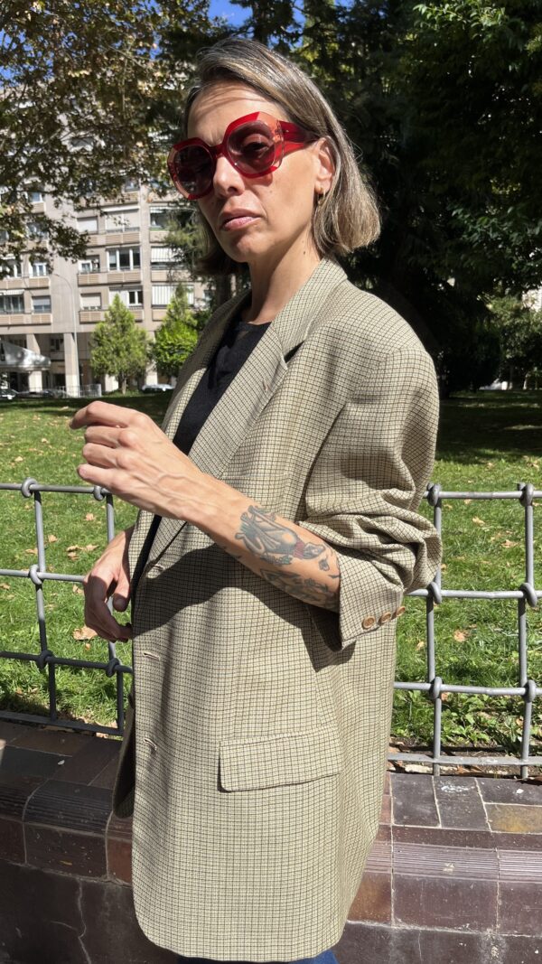 Americana de inspiración sastre con volumen generoso y caída limpia en un ante sintético (100% poliéster) de tacto muy suave. Presenta solapa de muesca amplia, hombro estructurado con hombrera media y cierre frontal de tres botones. El patronaje incorpora pinzas verticales y costadillos que ordenan la silueta sin ceñir, bajo…