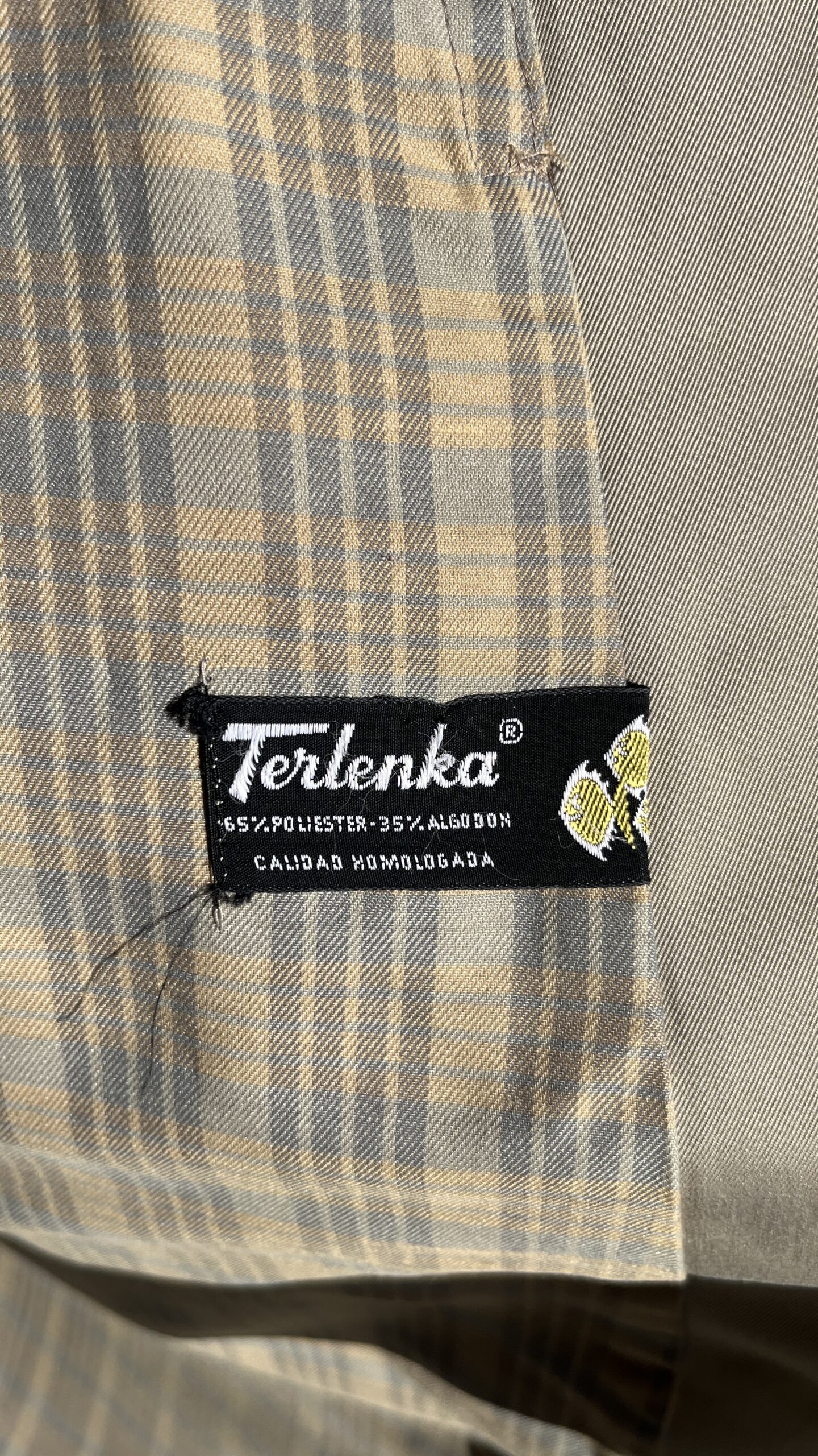 Tejido y composición: etiqueta Terlenka® 65% poliéster – 35% algodón, un clásico de la sastrería española por su resistencia al uso, fácil cuidado y buena caída, ideal para gabardinas. Exterior con estructura de gabardina/twill compacto.