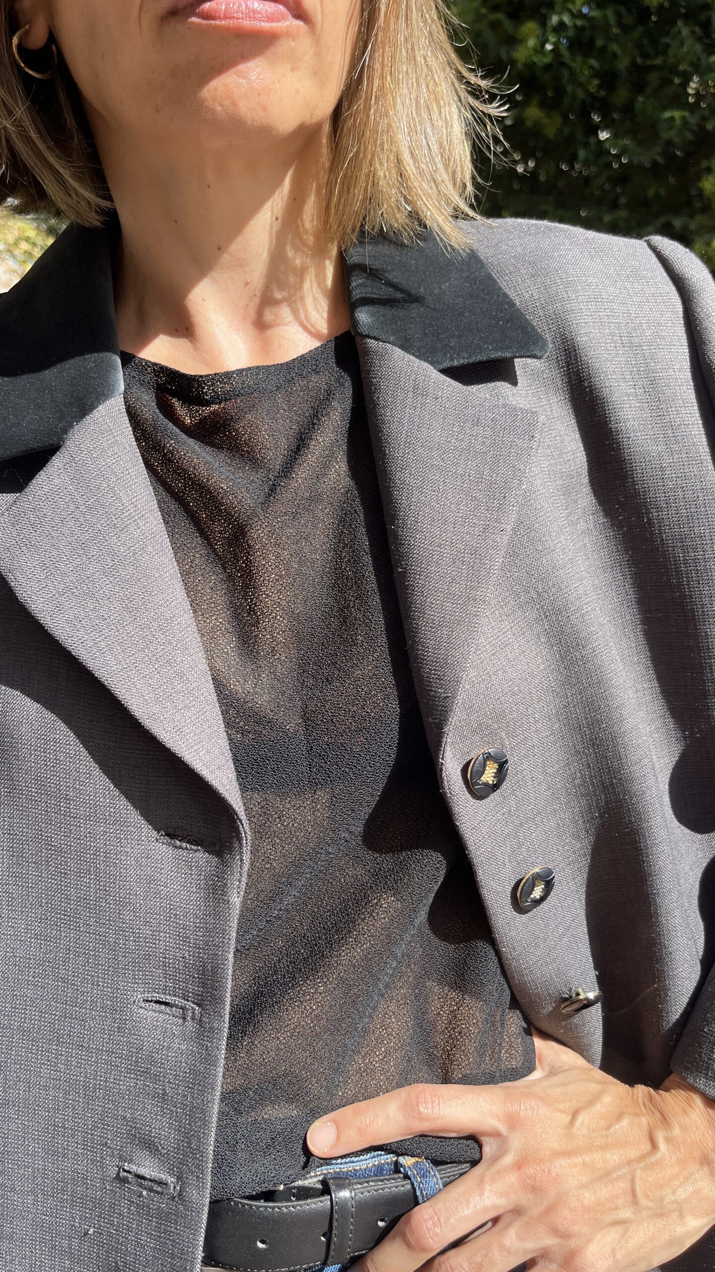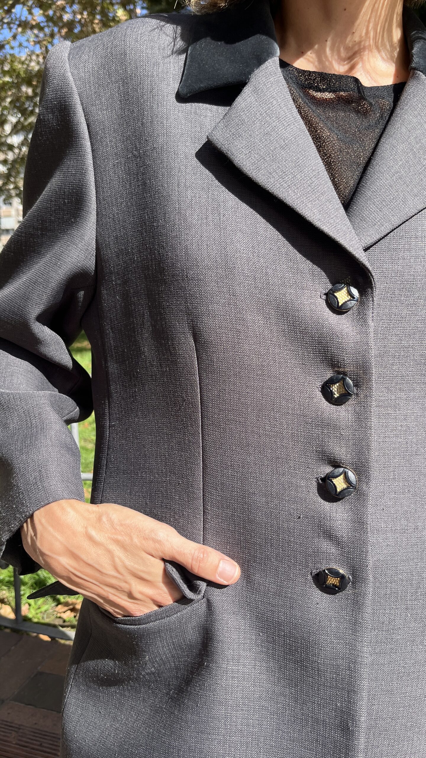 Levita-blazer gris con cuello de terciopelo Made in Spain Años 80